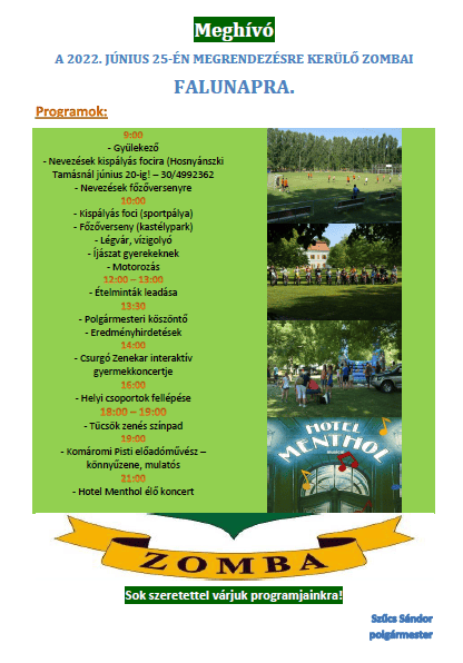 2022. június 25-én került megrendezésre a zombai Falunap.