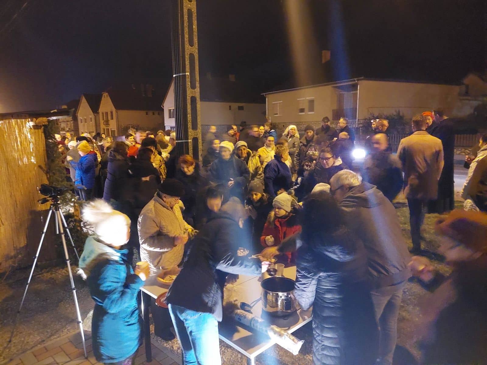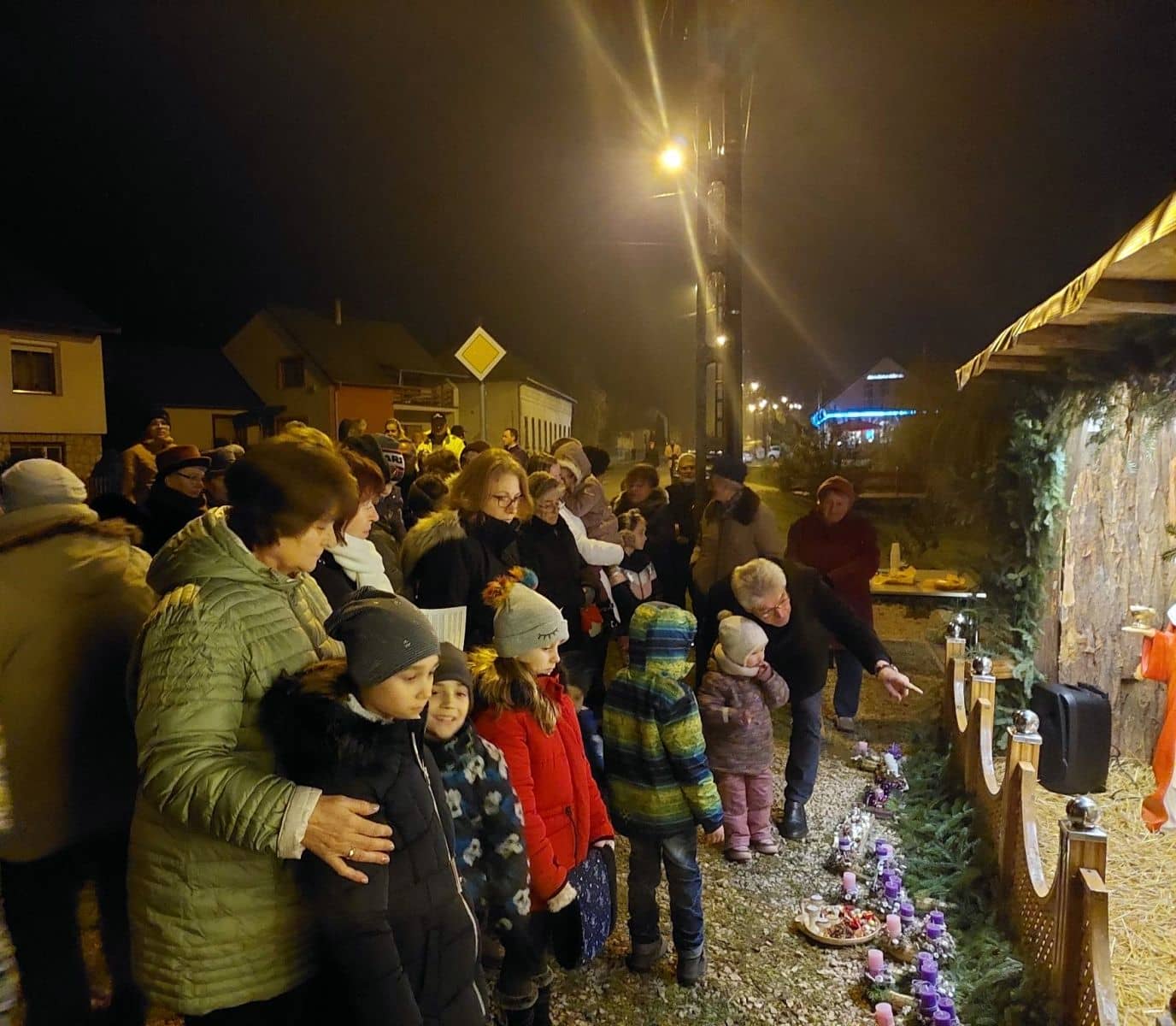 Nagyon sokan gyűltek össze a szabadtéri betlehem körül 17 óra előtt jó néhány perccel már. Többen az otthonukban készült adventi koszorút is elhozták magukkal, és a jászol elé helyezték.