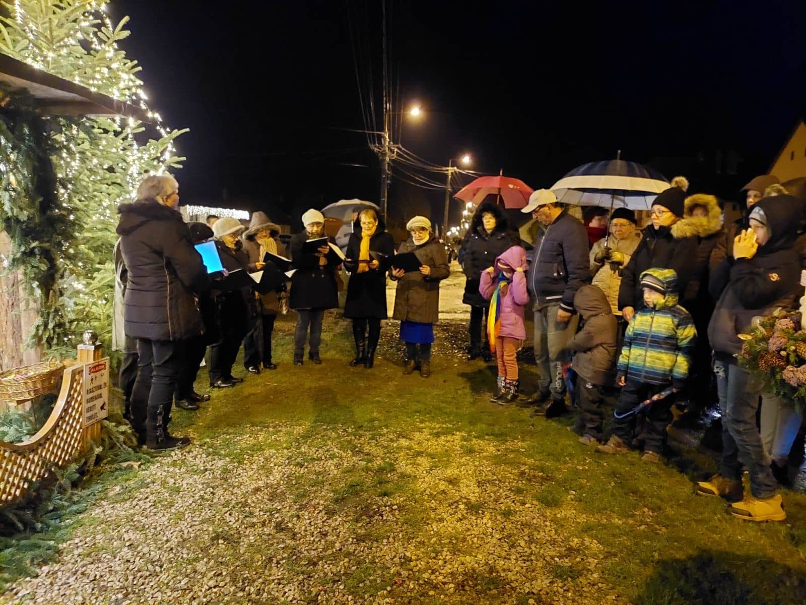 Az esős időjárás ellenére sokan gyűltek össze a betlehem körül 17 órakor. Toláczi Zsuzsa mondott köszöntő beszédet az egybegyűlteknek, melyen a Zombai Hagyományőrző Egyesület Margaréta Asszonykórusa is fellépett szép énekekkel.