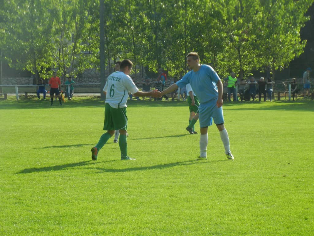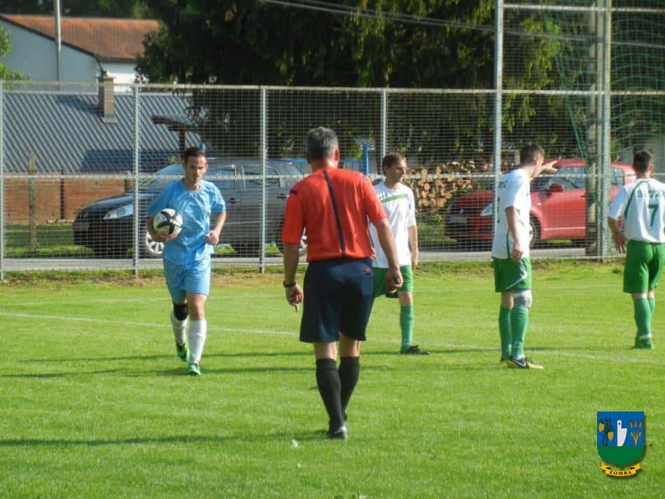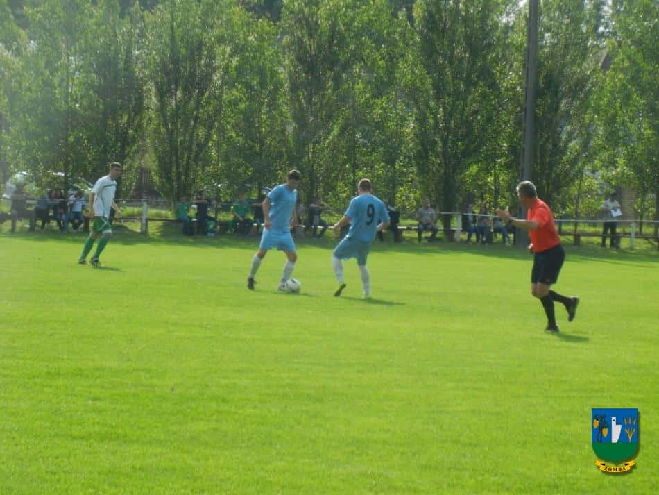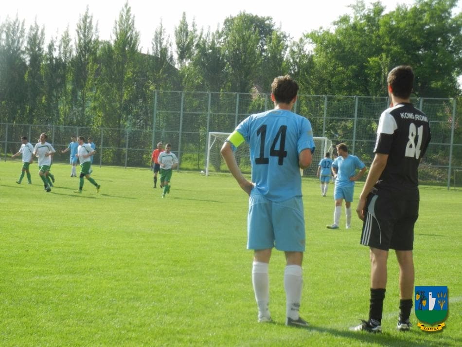 2015. május 16.-án, szombaton 17 órától az év mérkőzését rendezték a zombai sportpályán. A listavezető ZOMBA KSE az egy pontos hátrányban lévő Simontornyát fogadta, tehát igazi rangadóra számíthattak a szurkolók, akiknek nem is kellett csalódniuk. A 200-250 néző előtt lejátszott találkozón a vendég csapat hamar 2 gólos előnyre tett szert, majd átvette az irányítást a ZKSE, és még az első félidőben sikerült egalizálni (két kapufa után) Schaffler Dávid két góljával. A lélektani előny a hazai csapathoz került, és a 47. percben a fiatal támadó bombájával már a Zomba vezetett, MESTERHÁRMAS!!! Néhány kihagyott helyzet és két kapufa után a 4. találatot is megszerezték Hosnyánszki Tamás felső kapufás góljával. Ezután is inkább a Simontornya kapuja előtt adódtak lehetőségek, a vendégek erőtlen támadásait könnyen hatástalanította a zombai védelem, a magabiztosan védő és irányító Reitzi Tamás kapusnak mindössze egy nagyszerű védése akadt a mérkőzés végén.